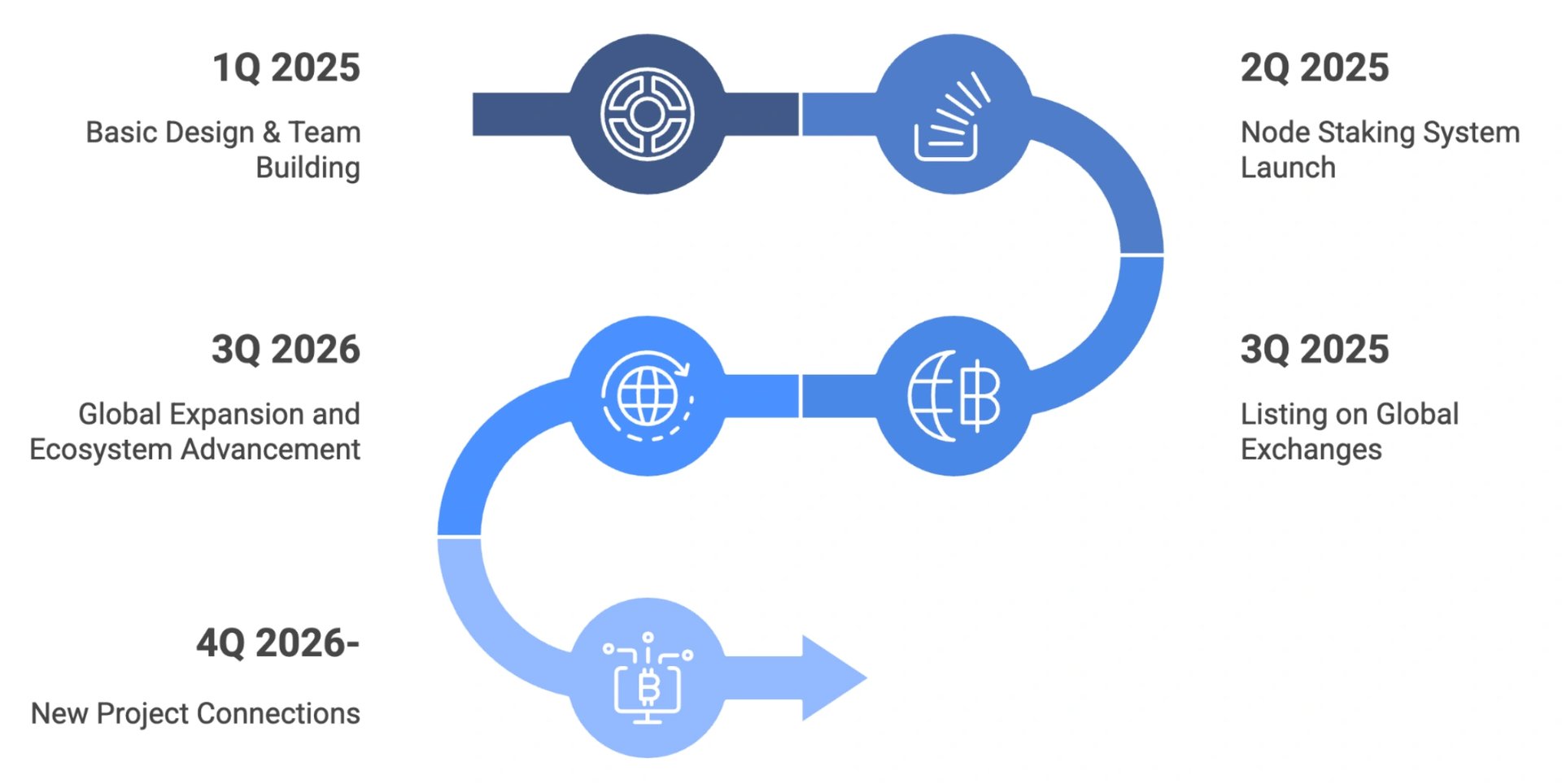 Phase 1 (Q1 2025): Establish foundational design and team structure, including the white paper, tokenomics review, and node architecture.