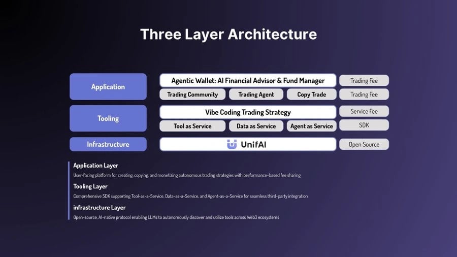 The platform defines this model as Agentic Finance—a system where intelligent, self-governing agents replace static automation. These agents use modular components to analyze markets, execute transactions, and learn from results. UnifAI’s framework relies on several core functions: configuration (monitoring cross-chain data and sentiment), execution (automated on-chain actions), and optimization (self-improvement through feedback and performance metrics).